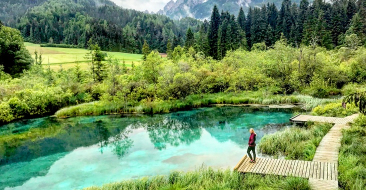 Další den, jsme vyrazili směr Slovinsko, cesta nám zabrala něco kolem 2 hodin. První zastávka byla rezervace Zelenci u Kranské Gory. Úžasné přírodní jezírko, které má neskutečnou barvu, žijí zde chráněné rostliny a živočichové a je obklopeno krásnými horami. Jelikož jsme tu byli brzo, byli jsme tam fakt sami a mělo to svoje kouzlo!